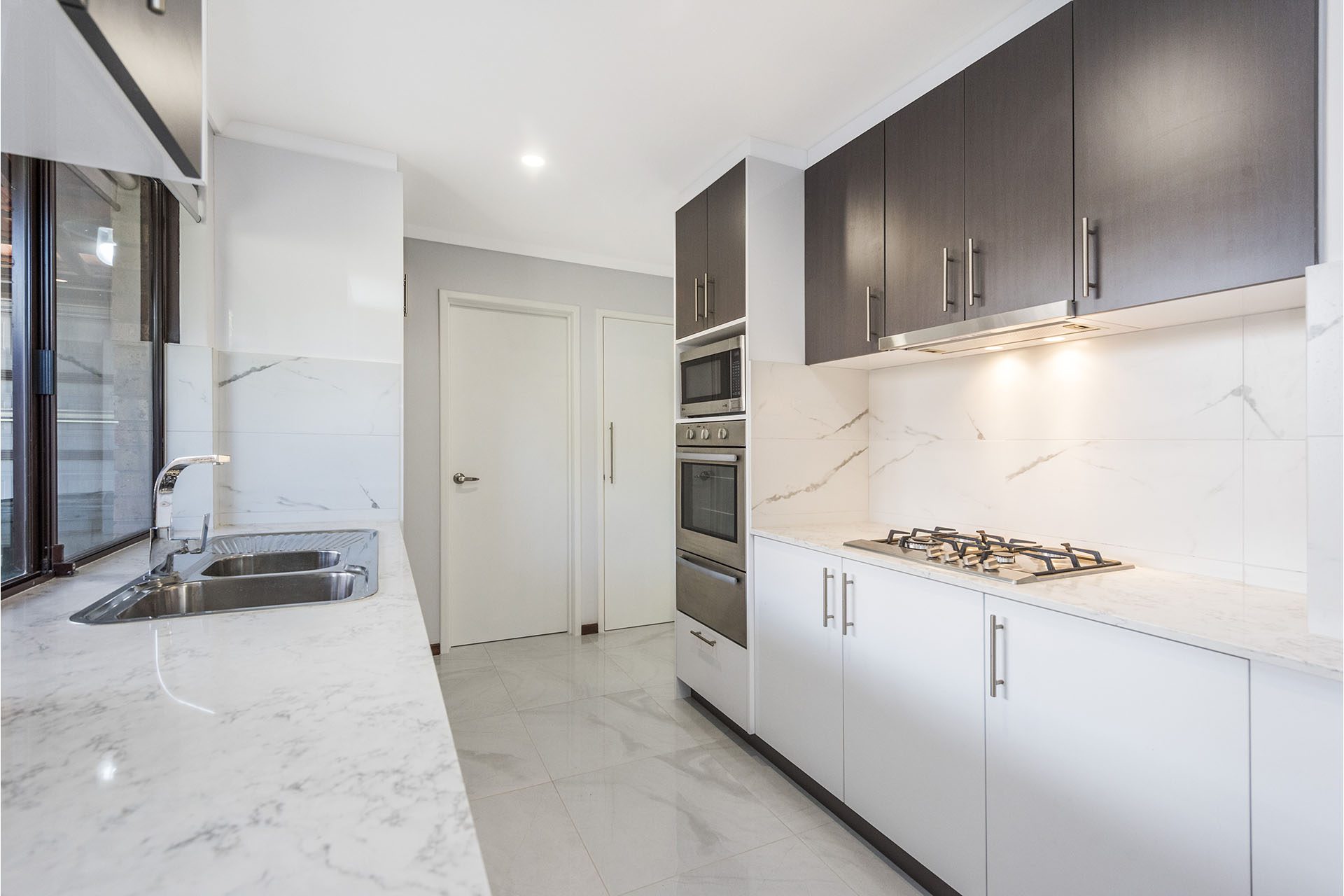 The kitchen (which leads to matching laundry) features beautiful Caesarstone tops and feature cupboards. The contemporary design maximises bench space and has all your appliances within easy reach.