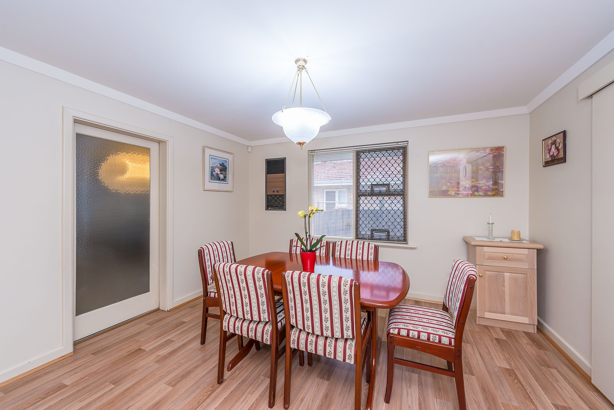 Upon entering the home, you’ll find a formal lounge with decorative ceiling and fireplace (gas heater), separate dining area; master bedroom with built in robe; 2 minor bedrooms both with built in robes, central bathroom with shower and WC; a large laundry off from the kitchen, separate WC and lovely pergola overlooking lush gardens and lawn.