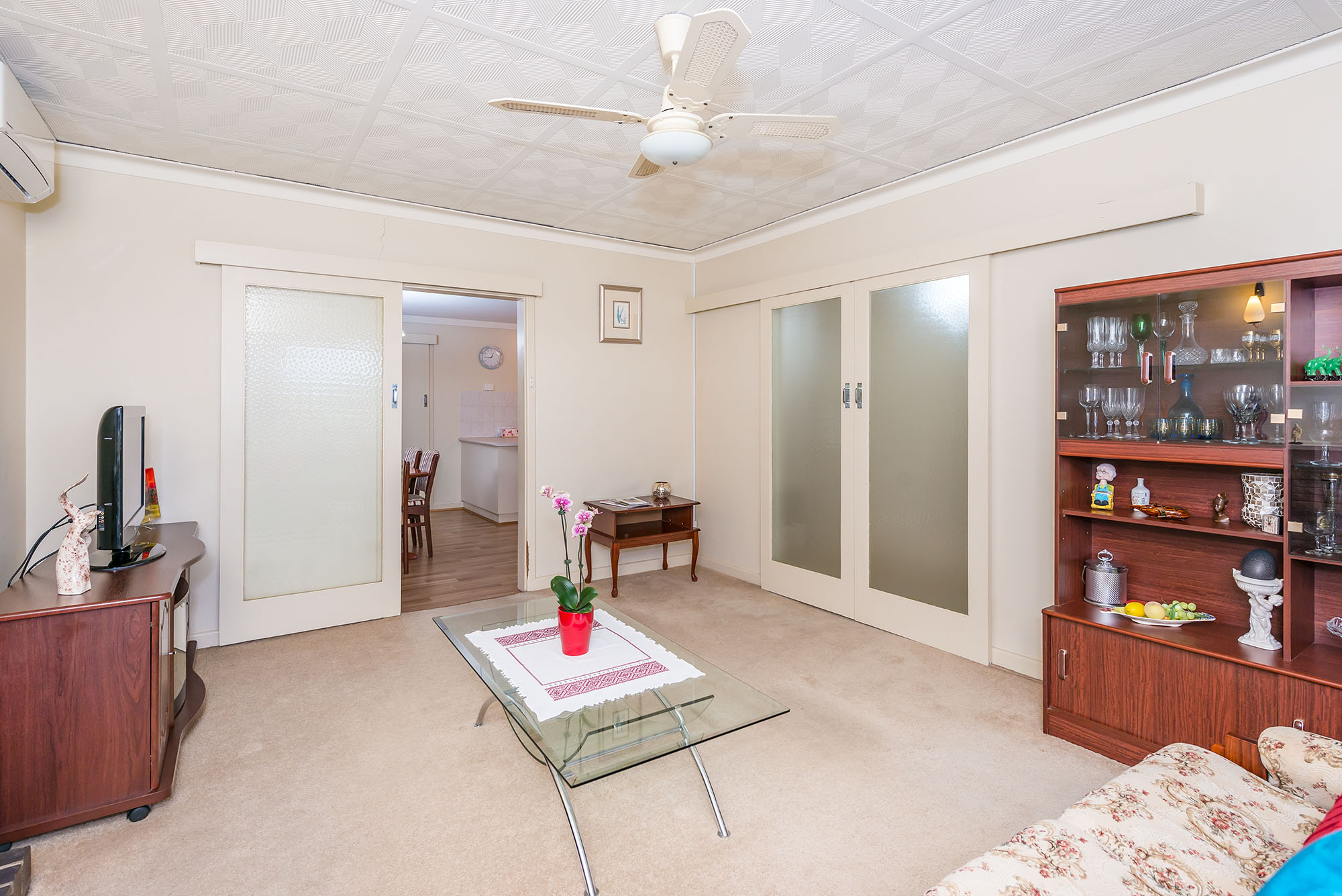 Upon entering the home, you’ll find a formal lounge with decorative ceiling and fireplace (gas heater), separate dining area; master bedroom with built in robe; 2 minor bedrooms both with built in robes, central bathroom with shower and WC; a large laundry off from the kitchen, separate WC and lovely pergola overlooking lush gardens and lawn.