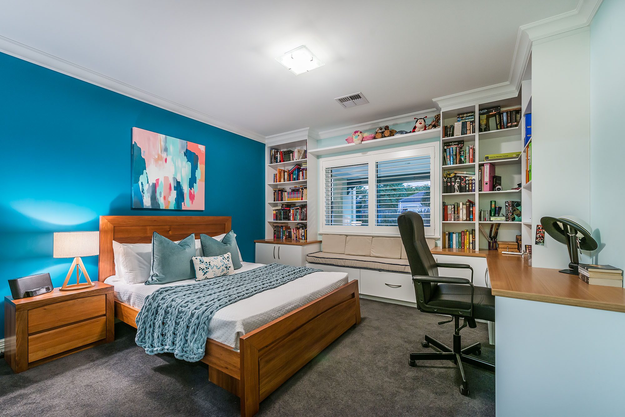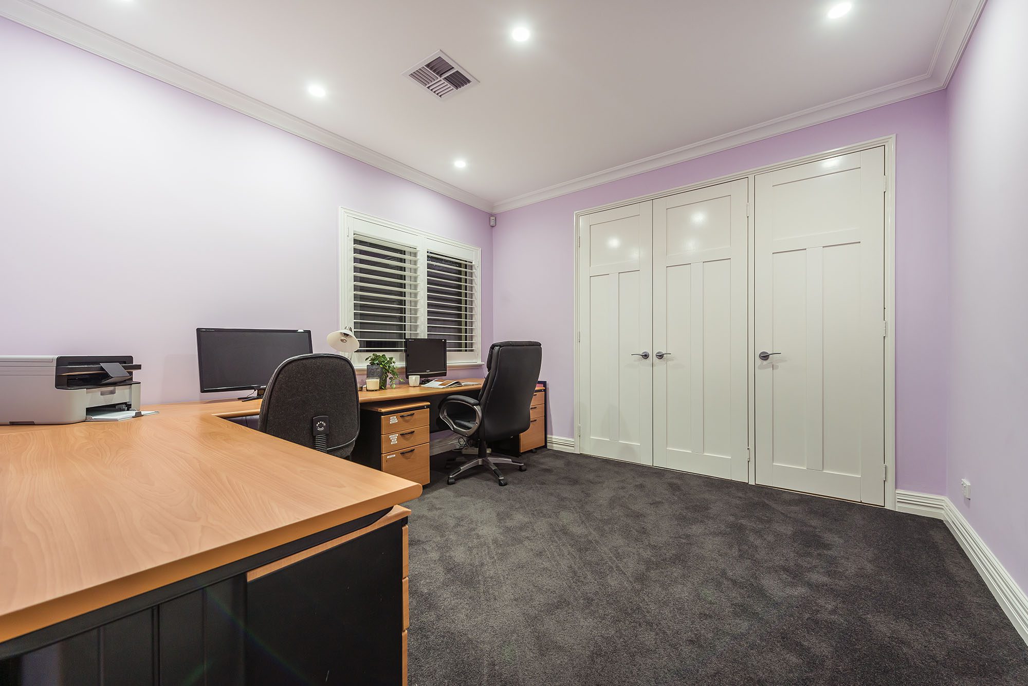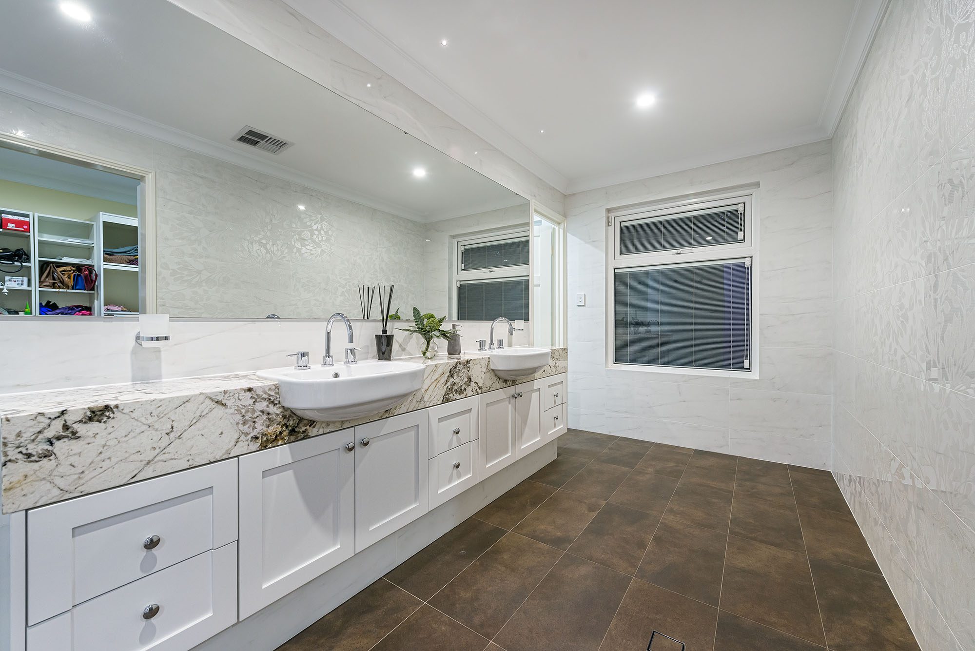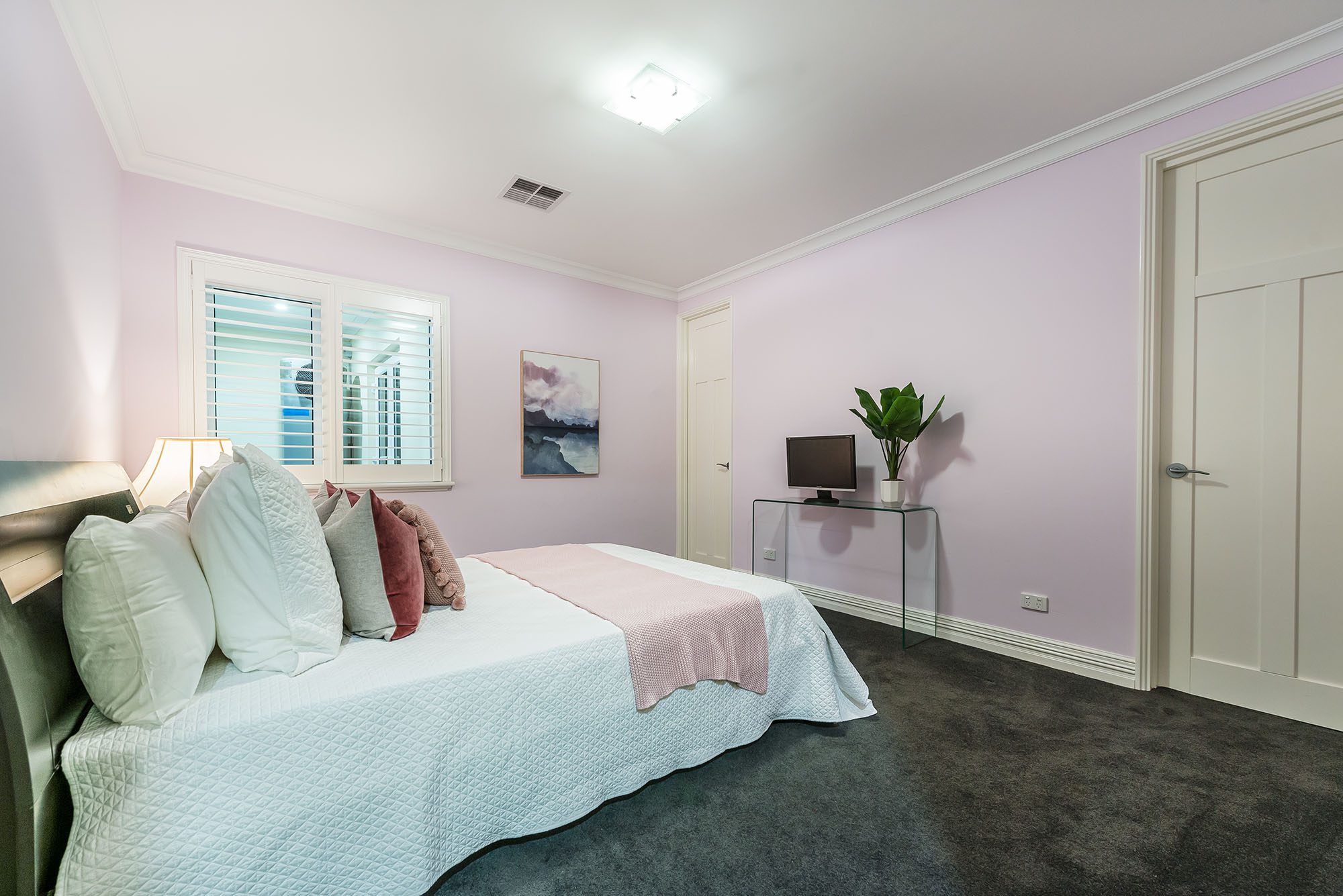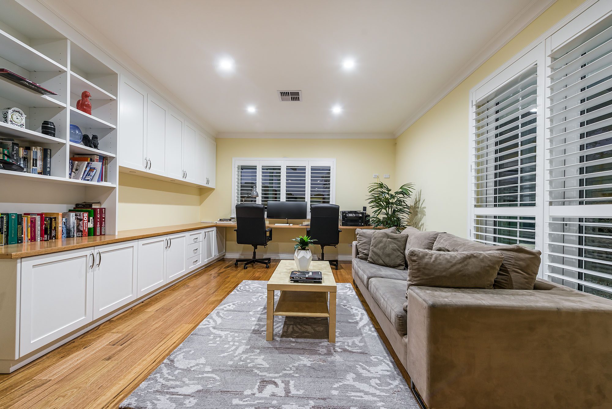 The luxurious main suite is bathed in sunlight and flaunting a stunning ensuite with a double granite vanity, separate shower and WC, PLUS a spacious walk in robe that will accommodate those who love clothes. The master has beautiful ambient lighting and a spacious private study or nursery.