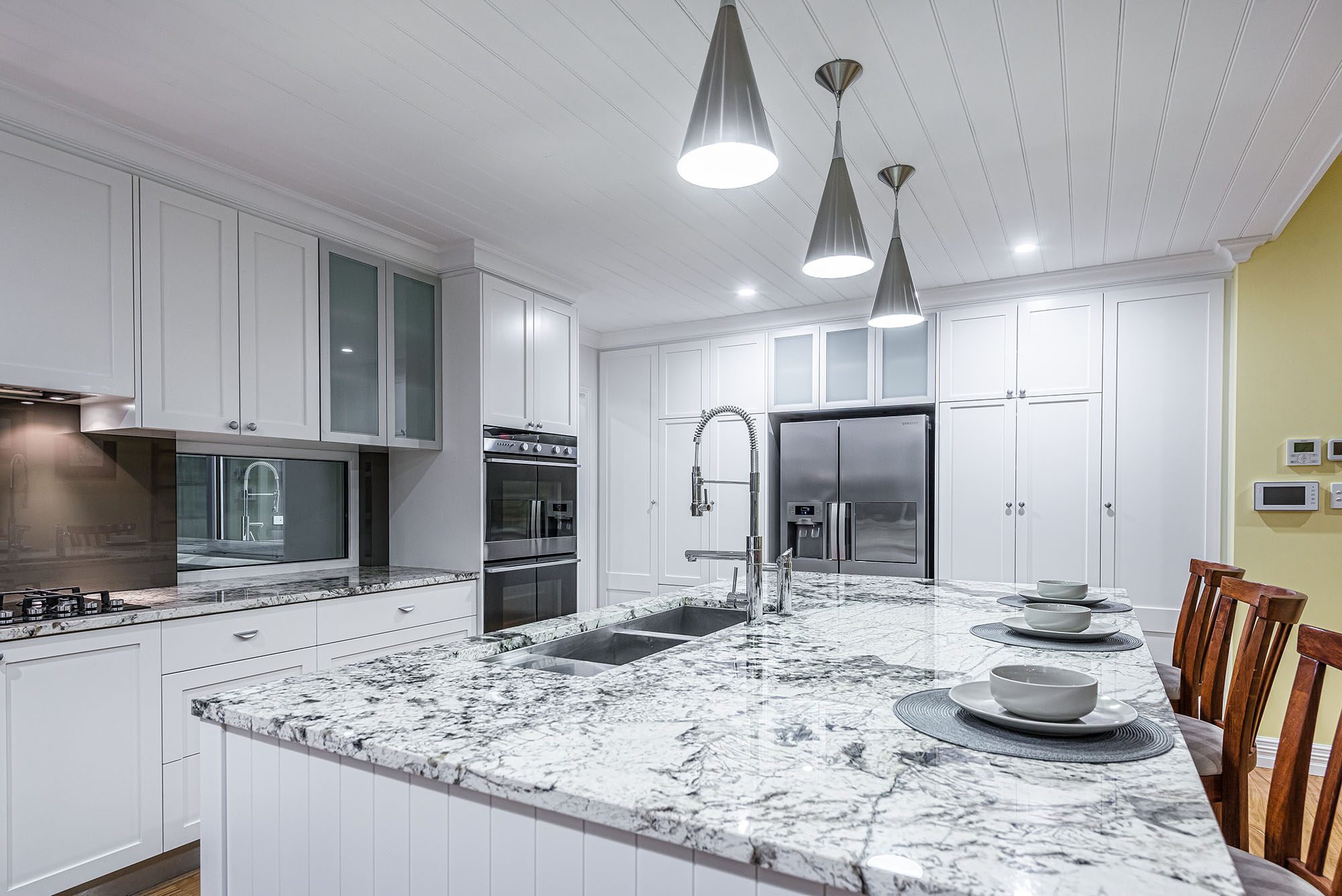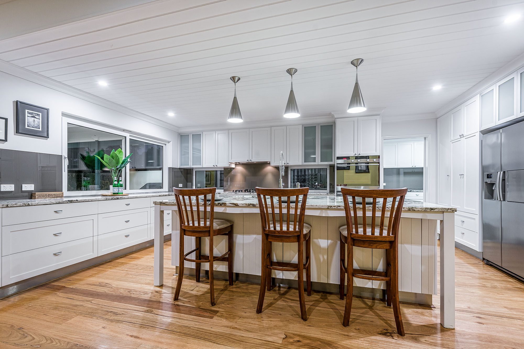– Bespoke Island kitchen: gas cook top, two 750cm ovens, dishwasher, an abundance of quality cabinetry, granite bench tops and breakfast bar