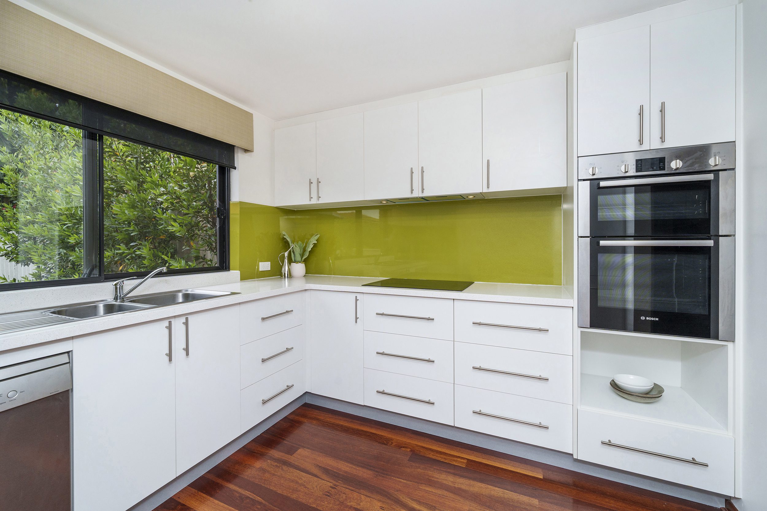 The renovated kitchen has plenty of light and space with plenty of storage within the self-closing drawers, a double pantry, with a corner cupboard with lazy susan making it easy for you to grab those pots and pans etc. There is a Bosch wall oven and dishwasher with a large Electrolux electric counter cooktop.