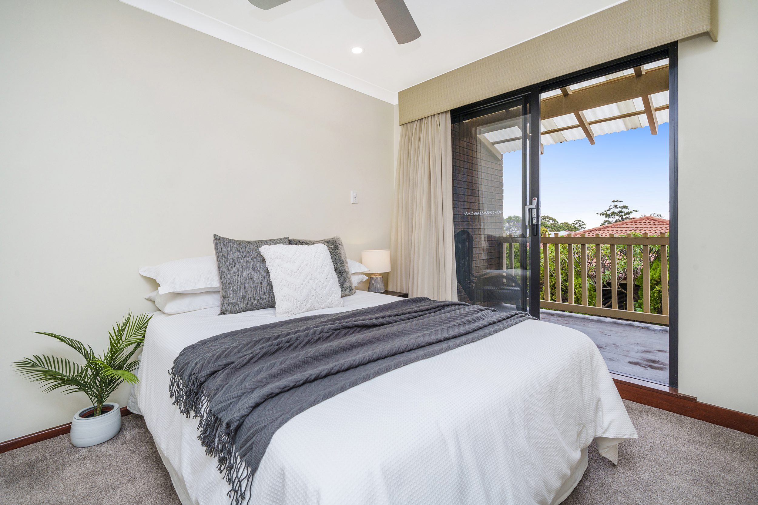 Upstairs is the 3 double sized bedrooms with quality carpeted floors and once again quality window treatments of sheers and blockout curtains. All bedrooms have built in robes with the second bedroom having balcony access.