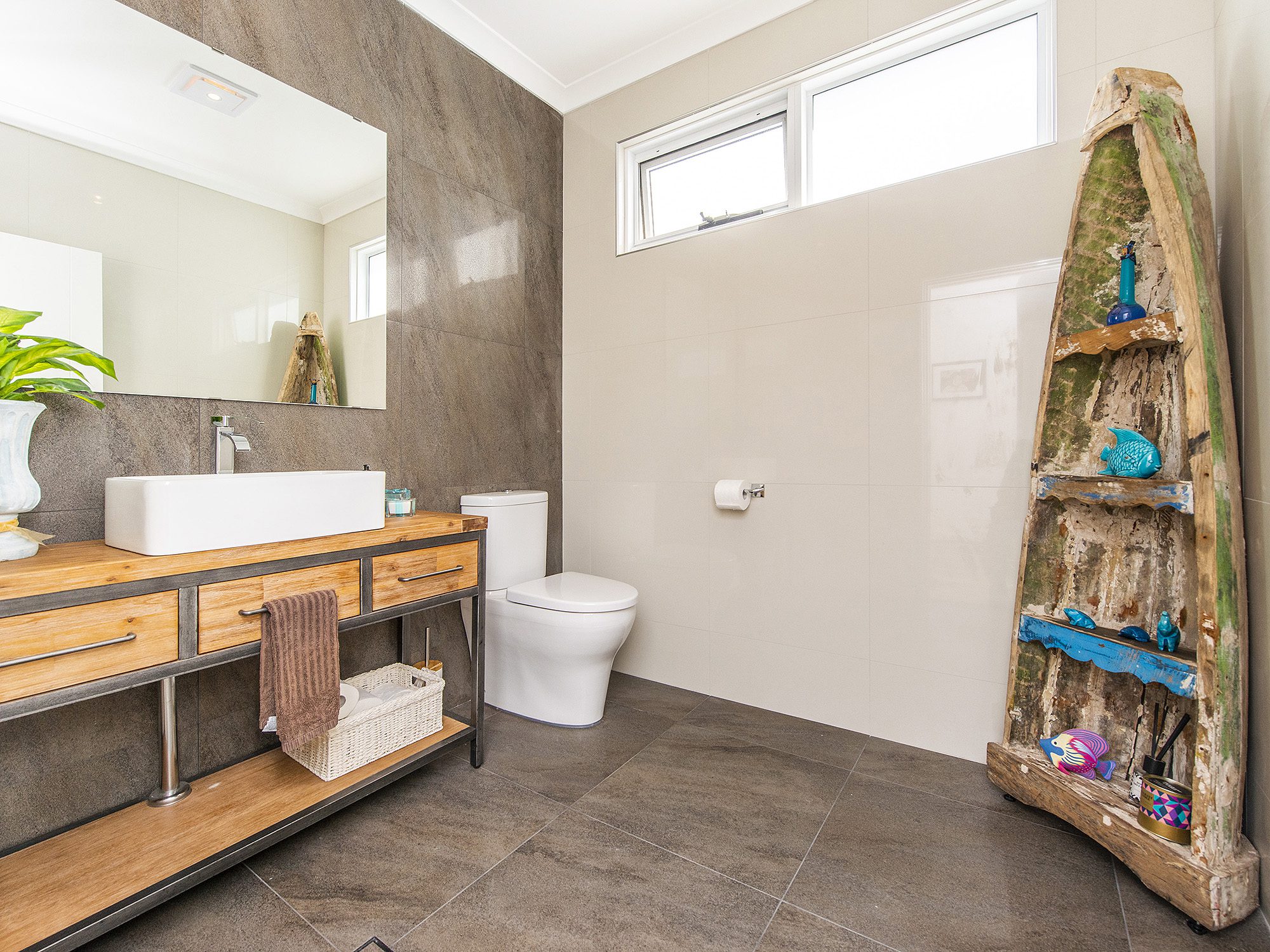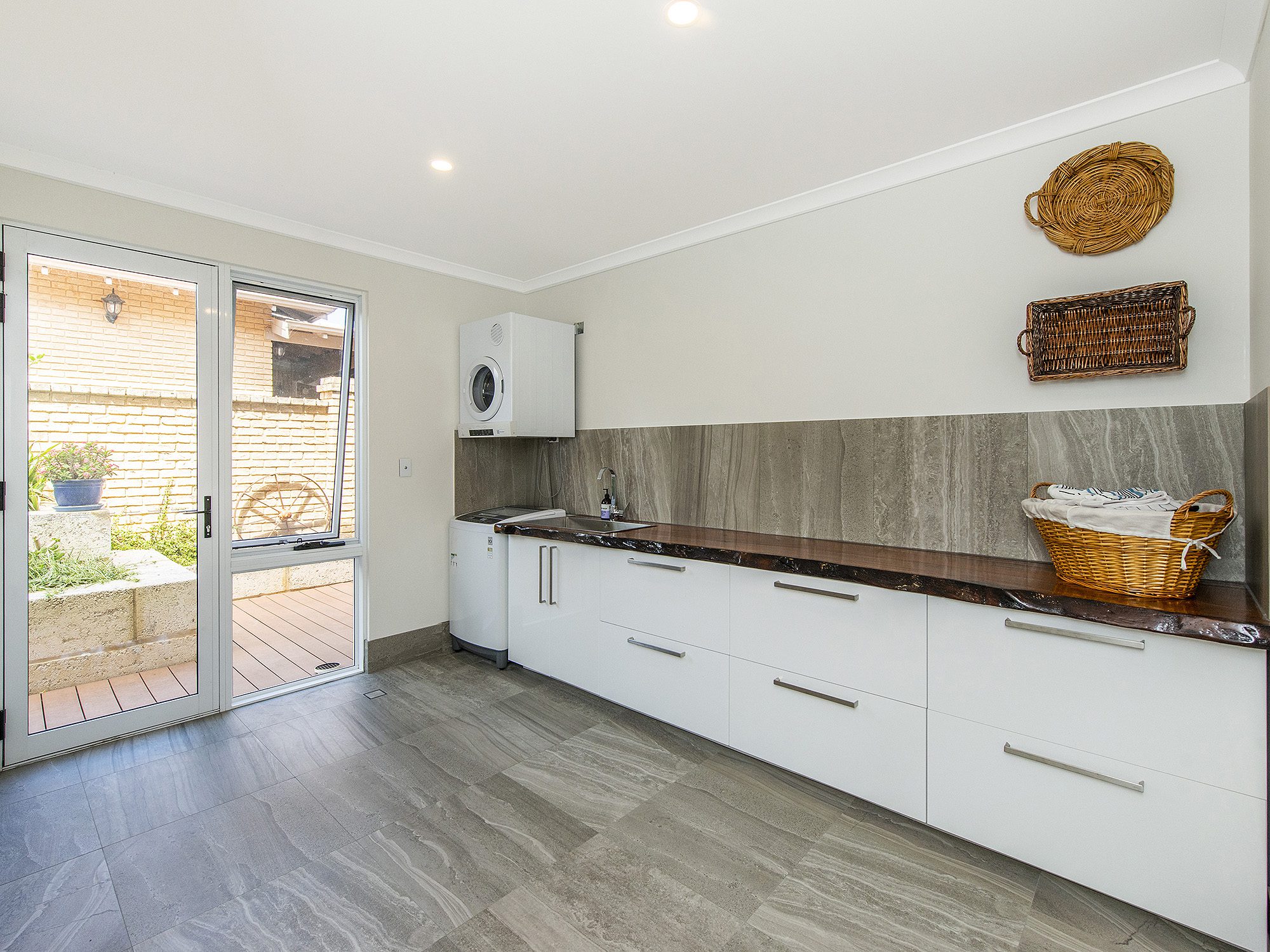 – Custom made Burned Jarrah bench tops to the stunning ensuite, bathroom, laundry and powder room
