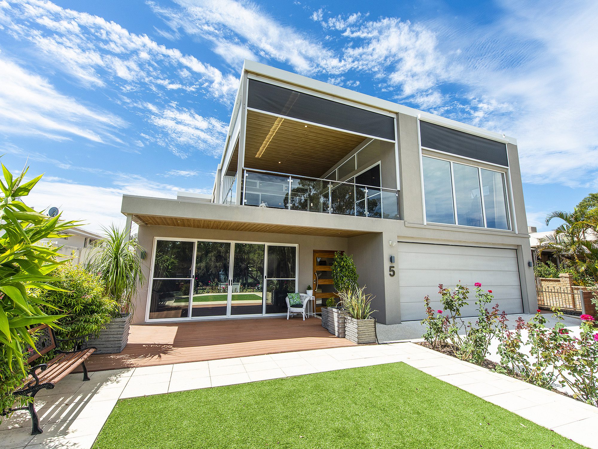 Inside the home is nothing short of stunning with a massive north facing upstairs balcony that provides the vista of boats, dolphins and quiet sunsets. With the living, dining and state of the art kitchen upstairs, the home encapsulates both style and function. The kitchen features premium appliances with double ovens (one a combi steamer), double dishwashers, cearsar stone waterfall bench tops and mirrored splash backs; entertaining will be a delight.