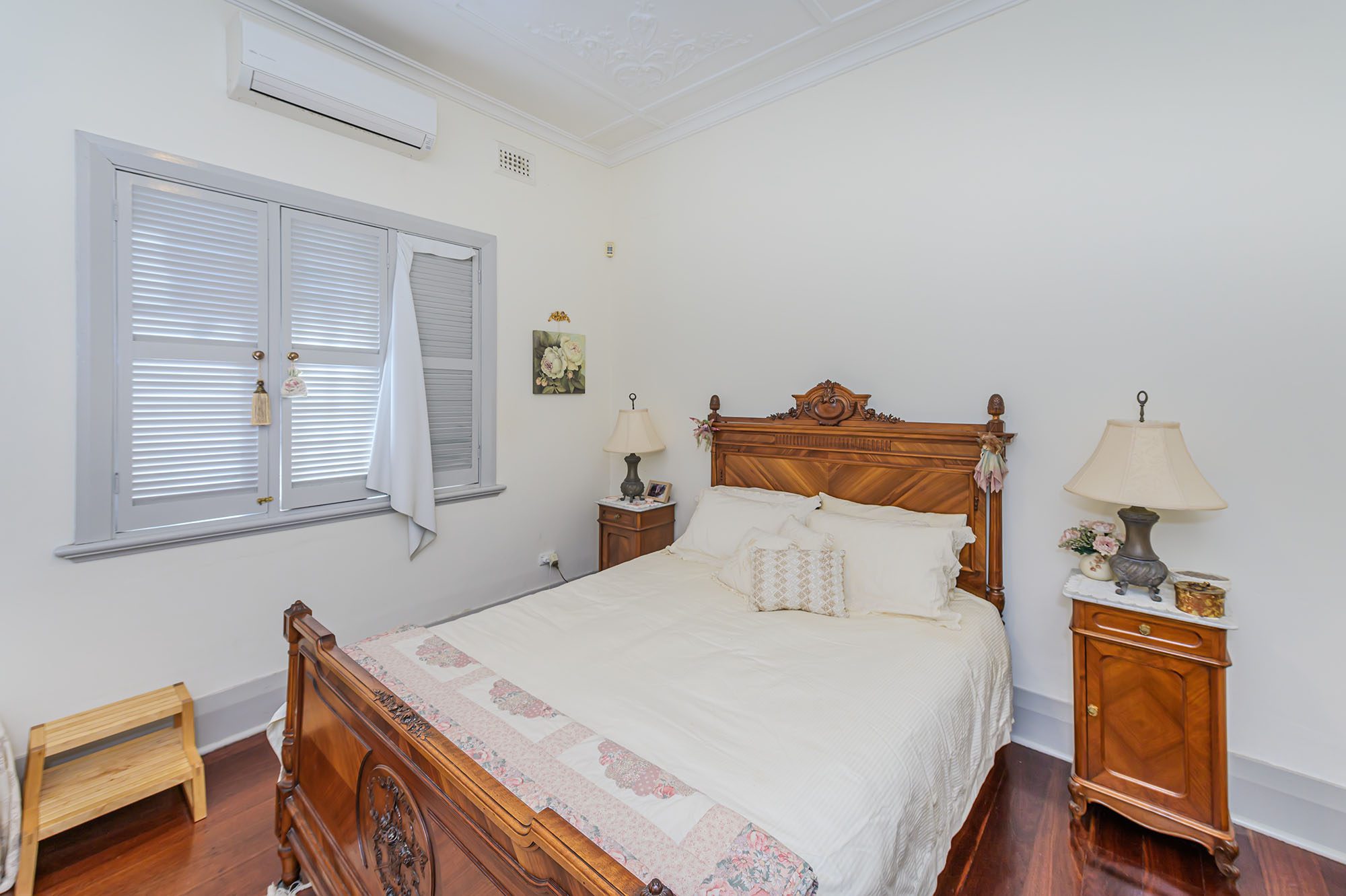 Oozing all the charm of yesteryear, you will be immediately impressed and taken by the beautiful high ornate ceilings, picture rails, polished jarrah and parquet floors perfectly integrated with contemporary features including unique modern leadlight features throughout the residence.