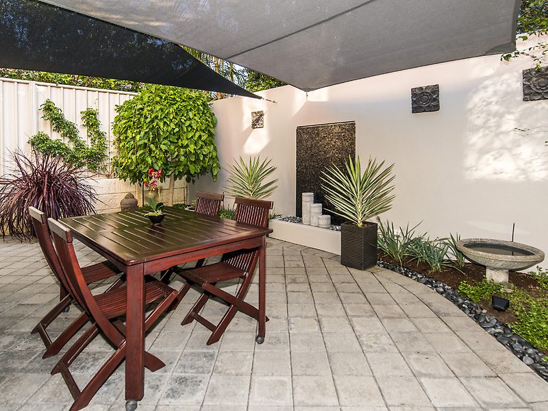 The courtyard offers shade sales, a water feature, and is generously sized – perfect for entertaining guests, relaxing and alfresco dining.