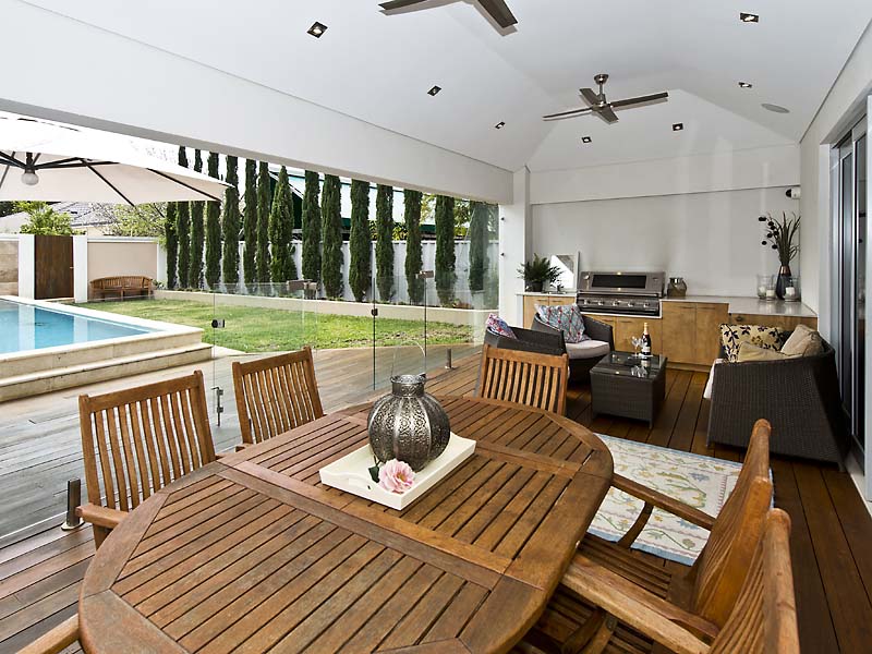 – Rear entertaining area with built-in BBQ, ceiling fans and lighting