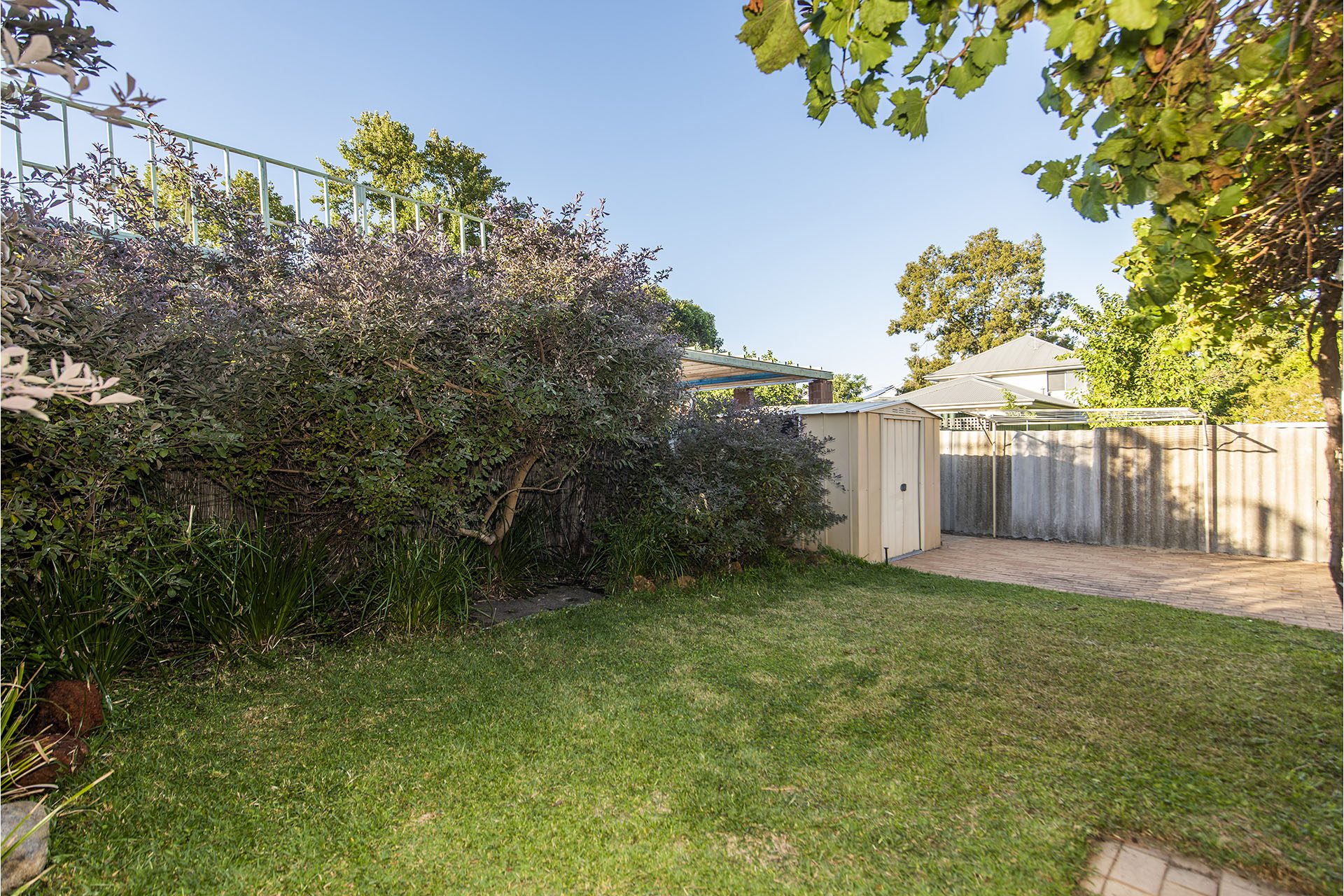 The impressive backyard has got a north facing aspect with entertaining and lawn areas plus a garden shed.