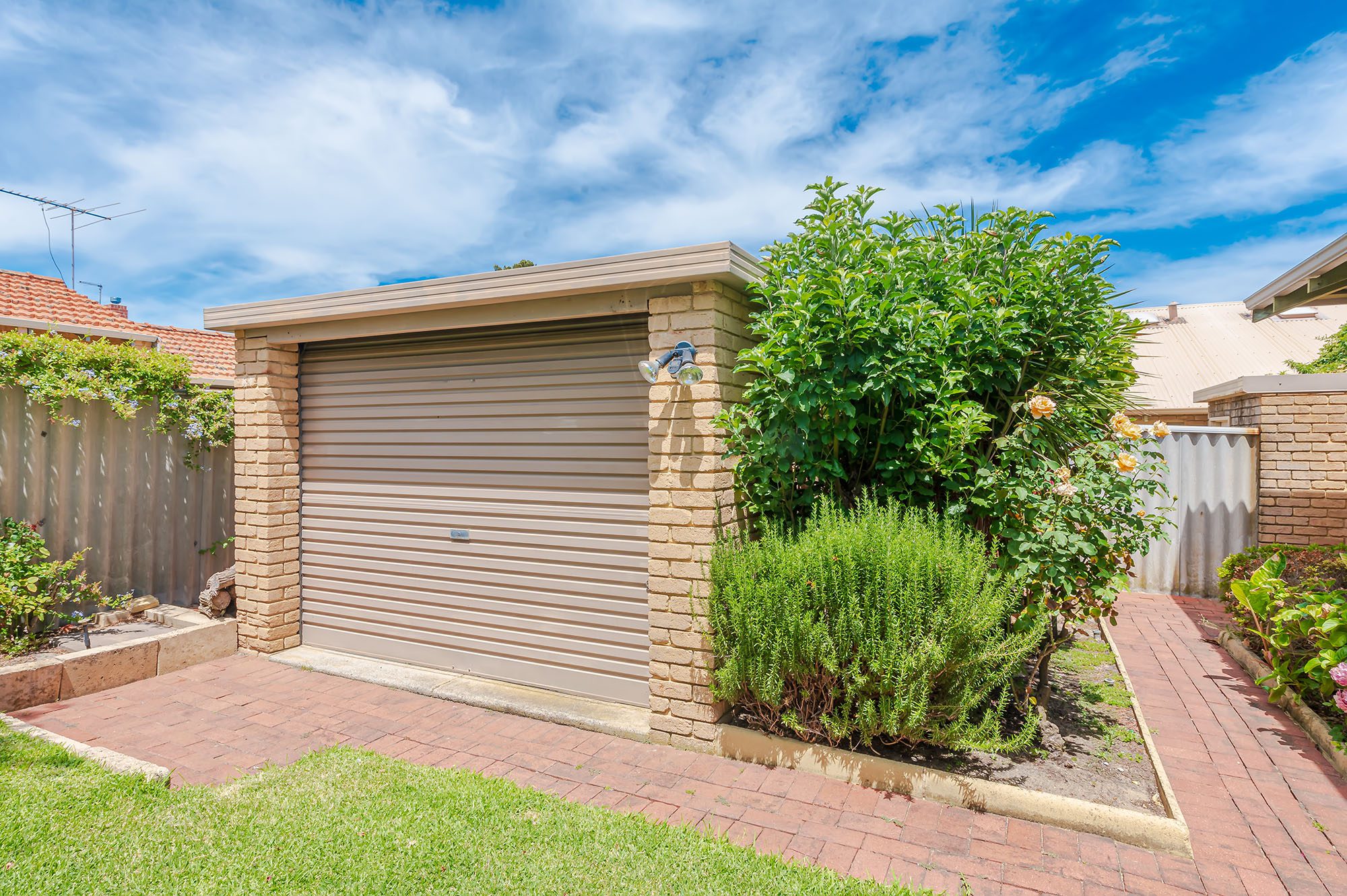 There is a secure free standing huge brick workshop / studio – ideal for a your personal time out….. The gardens and lawns are taken care of by a shared bore ensuring that you home is surrounded by lush greenery all year round. The spacious double carport has a remote garage door and access to the back yard.