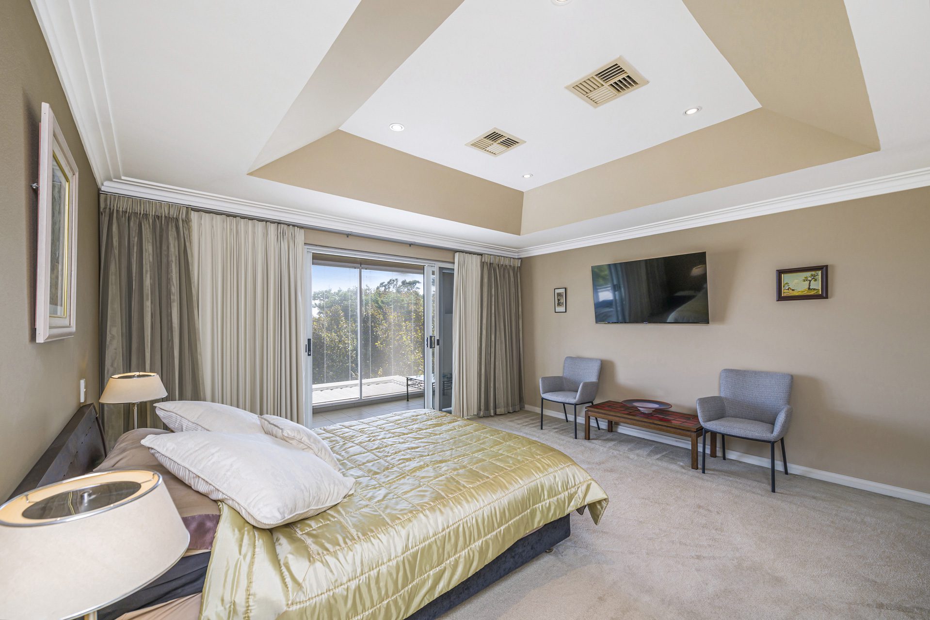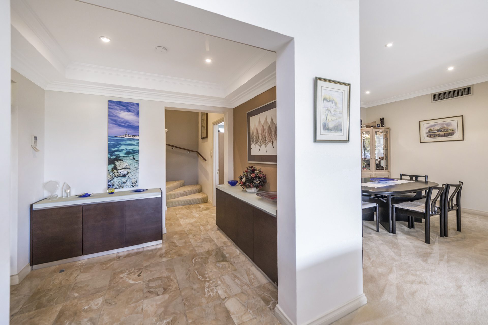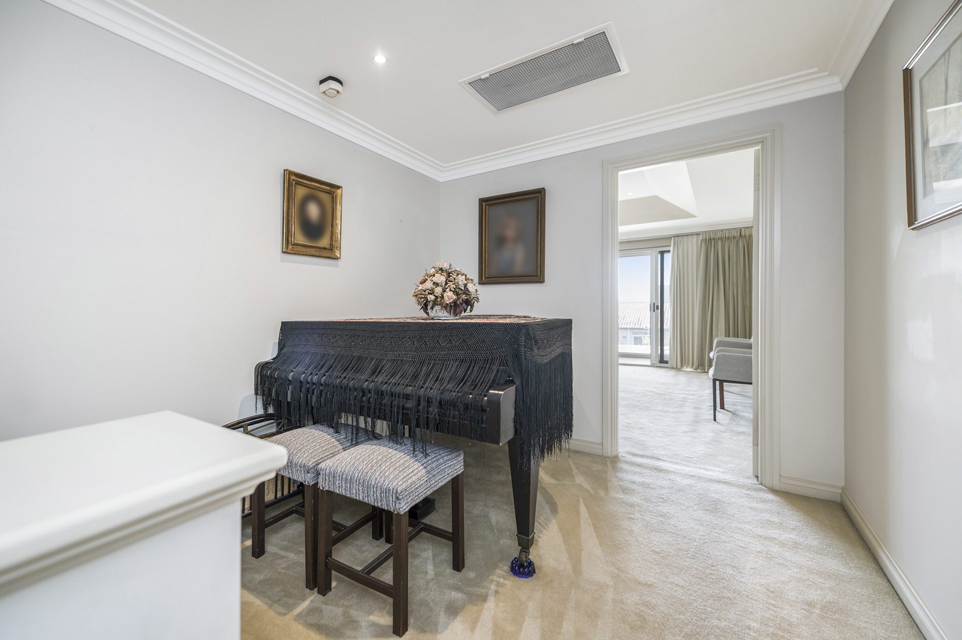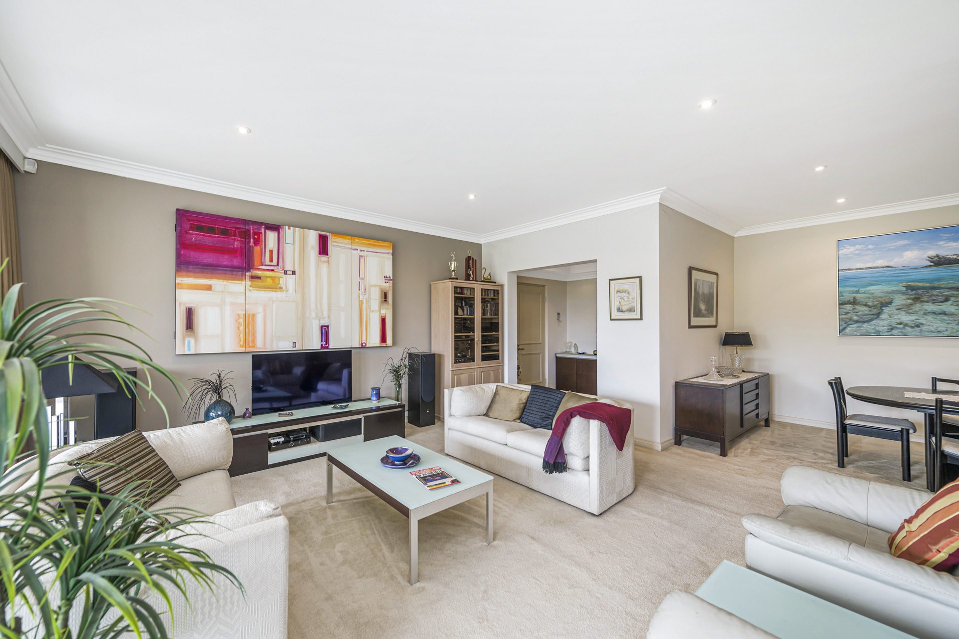 The light-filled family room is a true standout, complete with a bespoke theatre system that has previously been featured in a design magazine for its clever integration. A separate formal dining room adds to the home’s sense of sophistication and flexibility for entertaining.