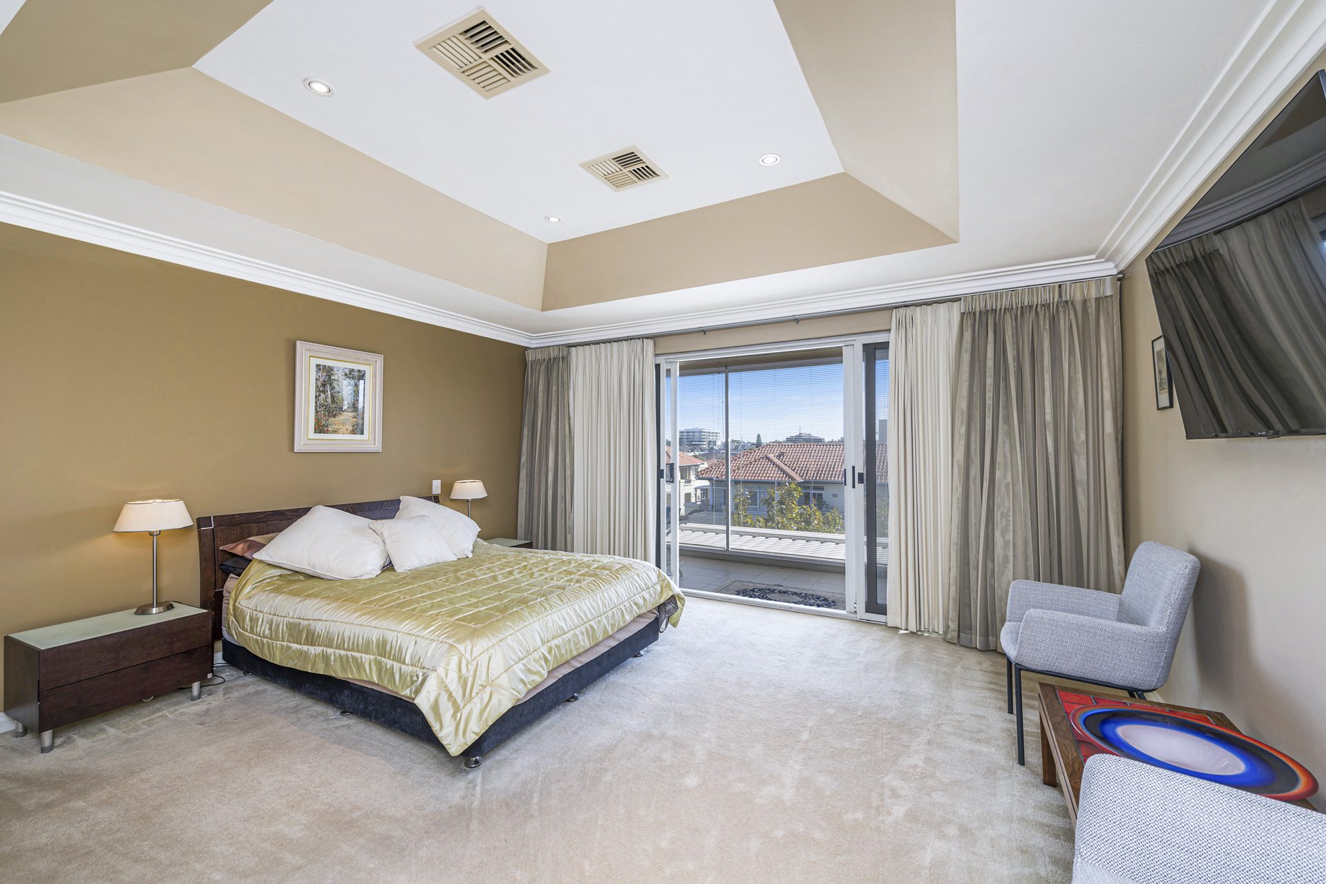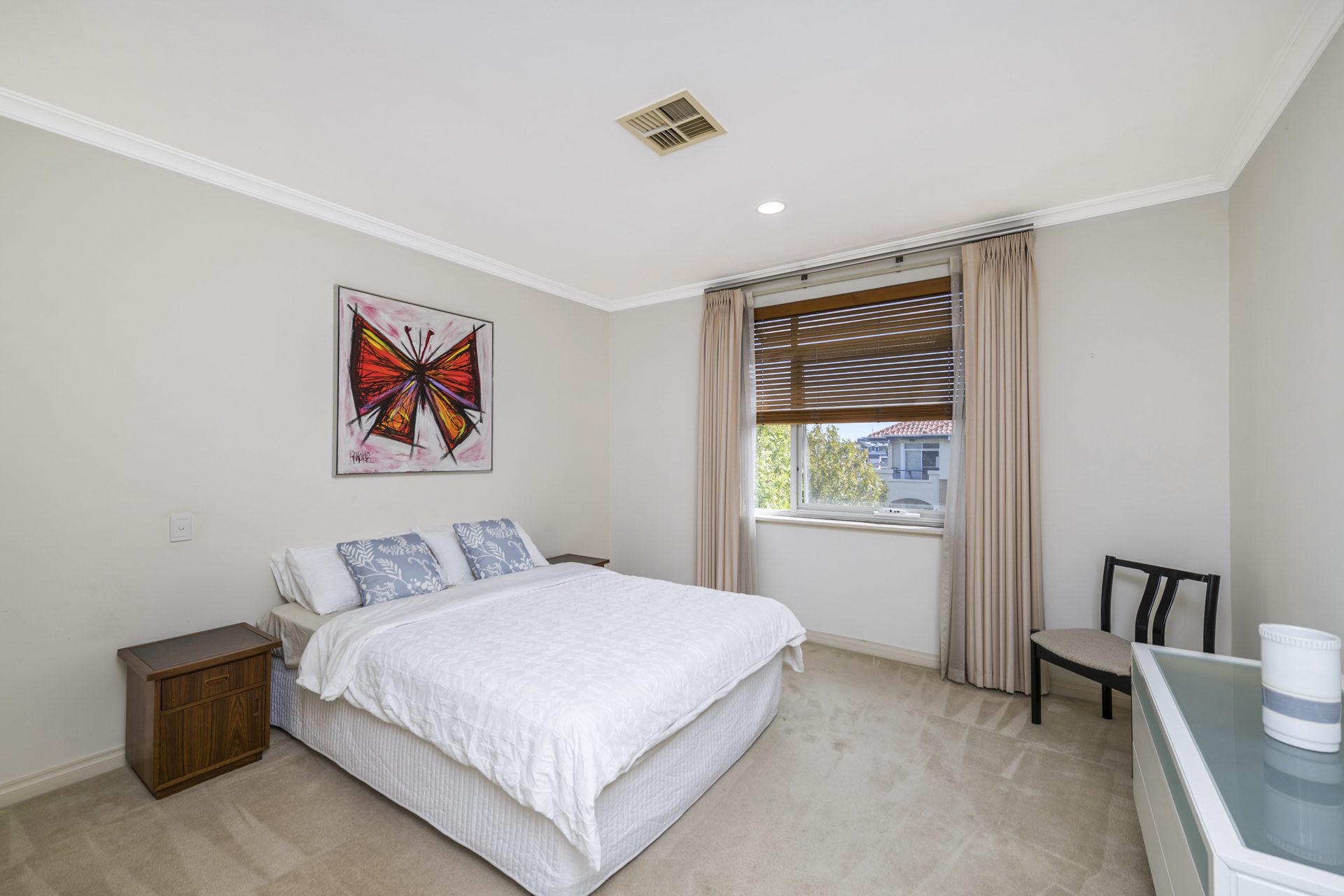 Upstairs, the master retreat is a private sanctuary. Enjoy both an enclosed balcony and an open-air balcony showcasing stunning views of the Perth city skyline. The luxurious ensuite is expansive, featuring marble flooring, floor-to-ceiling tiling, a double vanity with stone benchtops, corner spa bath, separate shower, and WC. A large walk-in robe is complemented by an additional multi-purpose room-ideal as a dressing room, nursery, or home office-plus convenient under-roof storage.