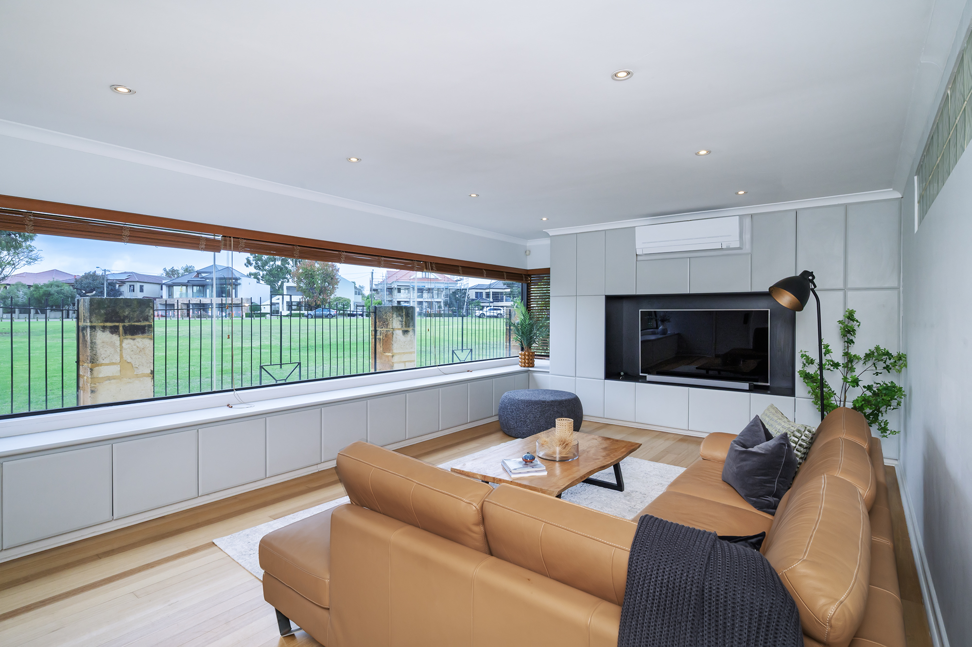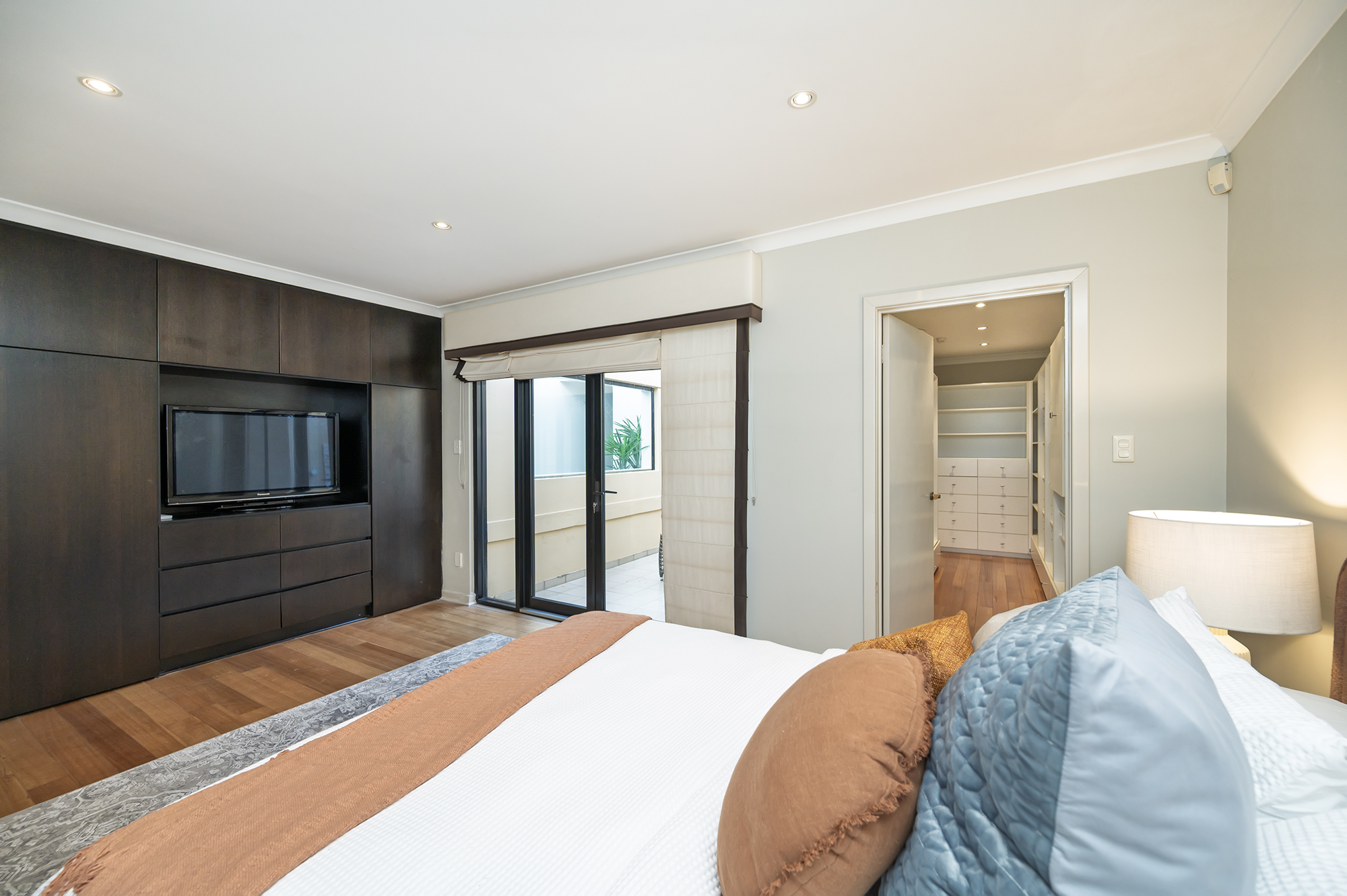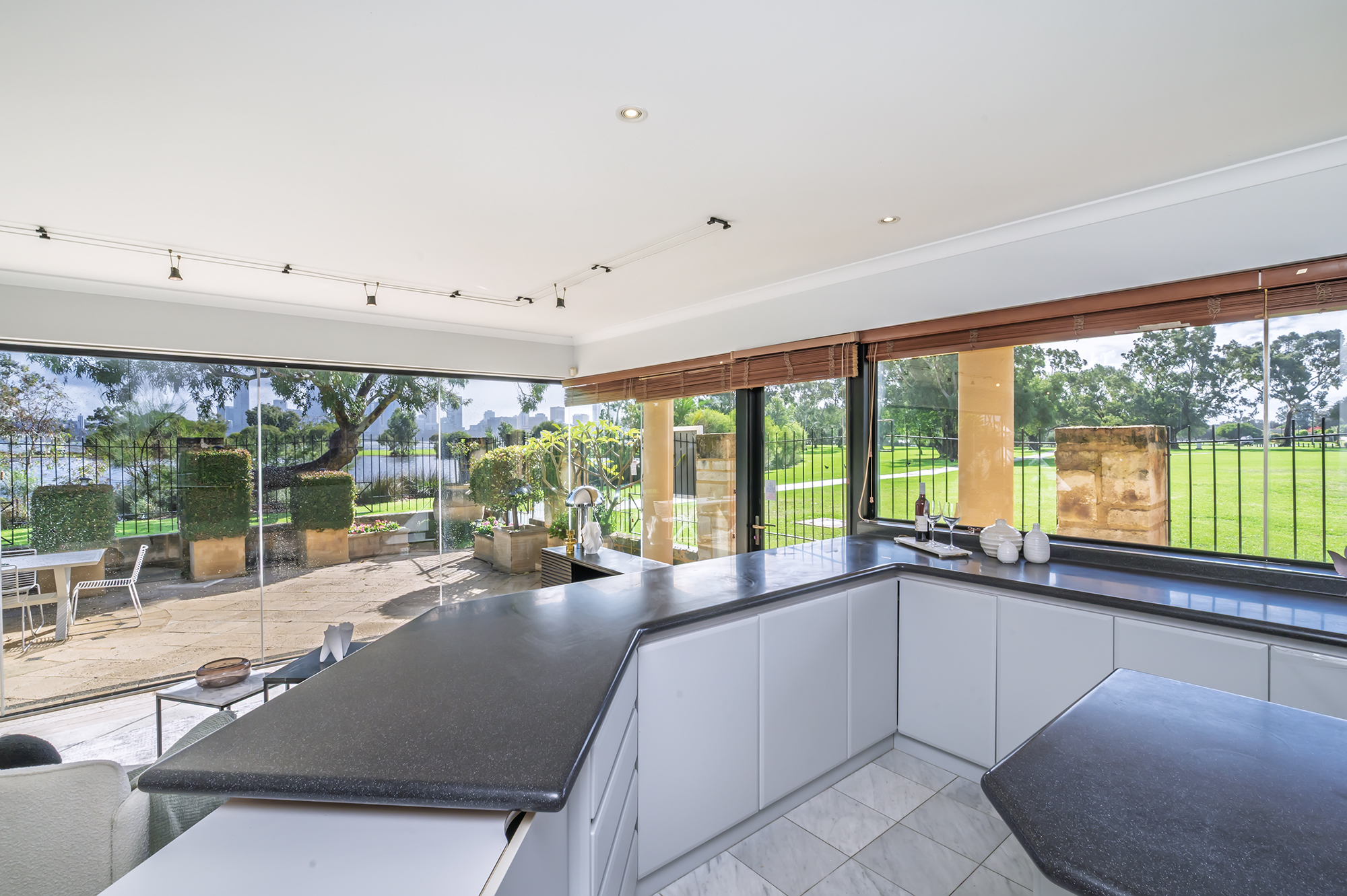 Additional features include a third family bathroom with a bathtub, separate shower recess, and WC; a vast family/TV room with ample storage; and a chef-style kitchen offering a wide view of the lakes, parklands, Swan River, and city skyline. The entertainer’s dining area adjoins a spacious living room with floor-to-ceiling windows, providing uninterrupted views. A family-sized laundry with abundant storage, a climate-controlled wine cellar, four WCs-including a separate powder room near the living areas-and internal access to a massive rooftop terrace for large-scale entertaining complete this impressive home.