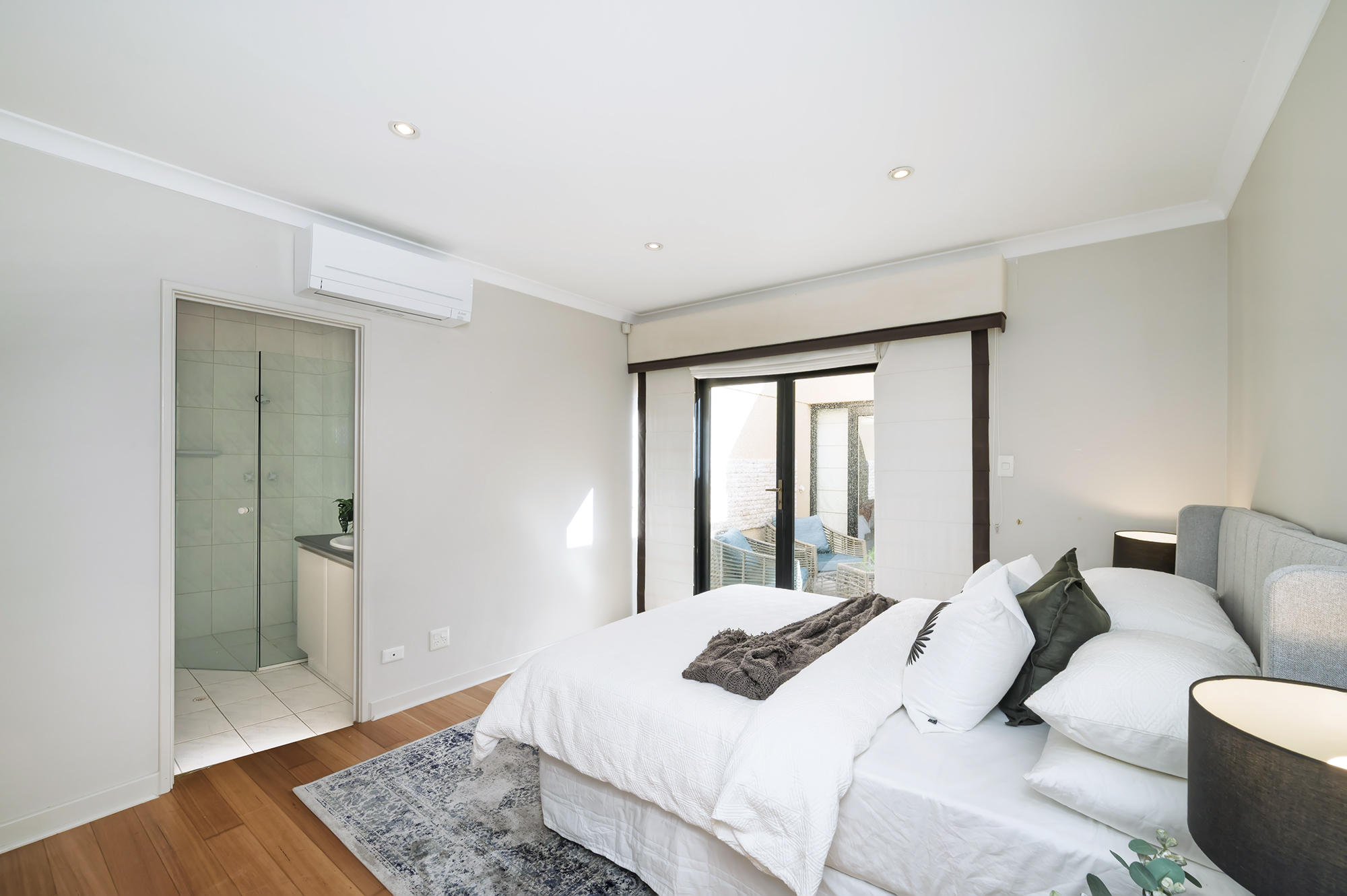 Positioned as one of the end homes for added privacy, this exceptionally spacious, single-level residence boasts five large bedrooms-each with its own air conditioner and built-in or walk-in robe-plus a home office conveniently located near the entry. The home includes three bathrooms, two of which are ensuite, with the master suite featuring a generous walk-in robe, extensive storage, and a luxurious ensuite complete with a WC, towel warmer, dual vanities, and a separate shower and spa room. Both the master and second bedroom suites enjoy access to a private courtyard.
