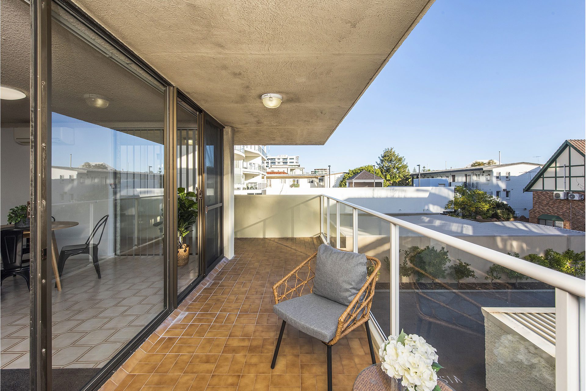 Neat, tidy and well presented is this 2 x 1 corner apartment with L shaped balcony.
