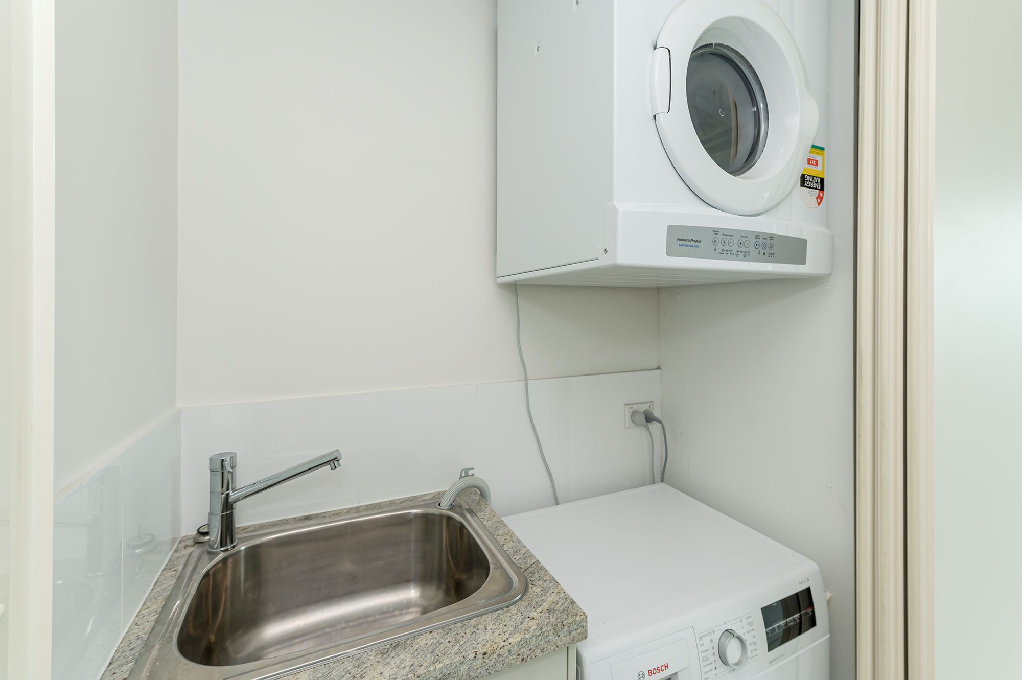 The recently upgraded kitchen, adorned with elegant granite benchtops, LED downlights, plumbed fridge and equipped with quality appliances, exudes both style and practicality. Ample storage space ensures a clutter-free environment, further enhancing the apartment’s sleek aesthetic.