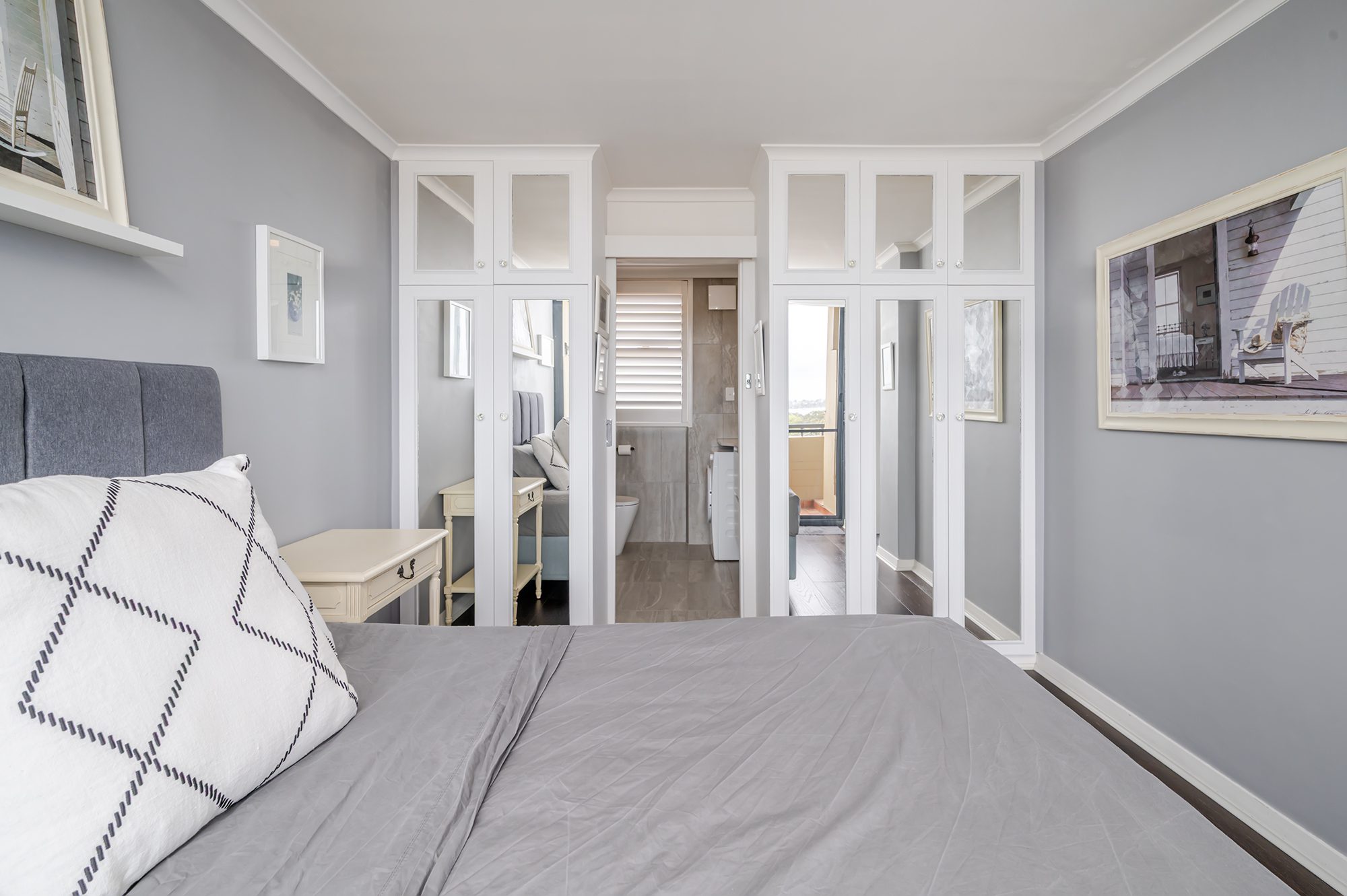 Spacious bedroom with built-in wardrobes